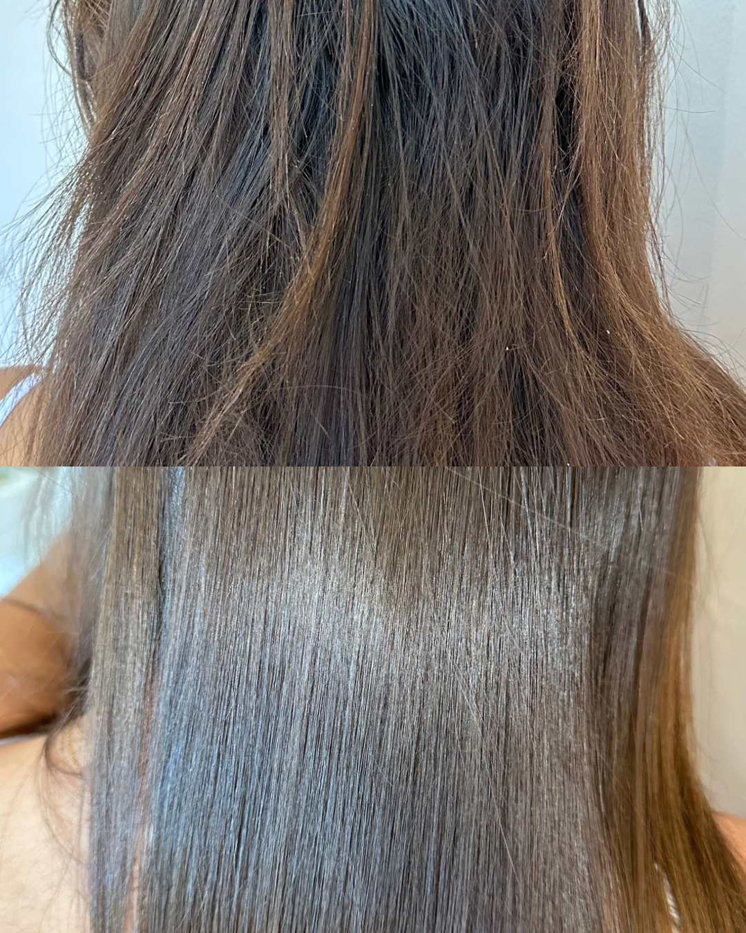 AVANT : Cheveux ternes et fatigués. APRÈS : Éclat spectaculaire en une seule application.